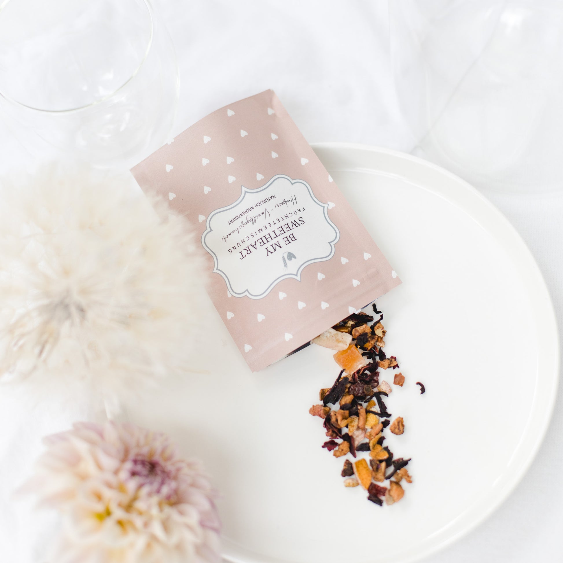 Der Geschenk-Früchtetee „Be my Sweetheart“ ist ein liebevolles Geschenk für deinen Herzensmenschen zum Valentinstag oder als kleine Aufmerksamkeit. Mit der süßen Himbeer-Vanille-Note verzaubert der Tee deinen Schatz und ist das perfekte Geschenk von Herzen. Der Tee wärmt im Winter von innen, im Sommer kann er auch kalt mit Eiswürfeln genossen werden als fruchtiger Eistee. Perfekt für einen Tee am Morgen oder als Nachmittagstee mit deinem Liebsten.