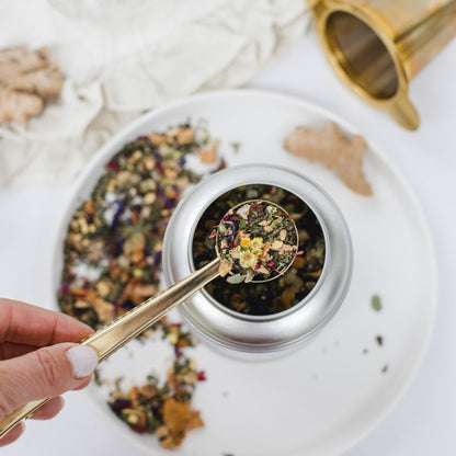 1. 4-5 Teelöffel Tee in ein Teesieb geben.