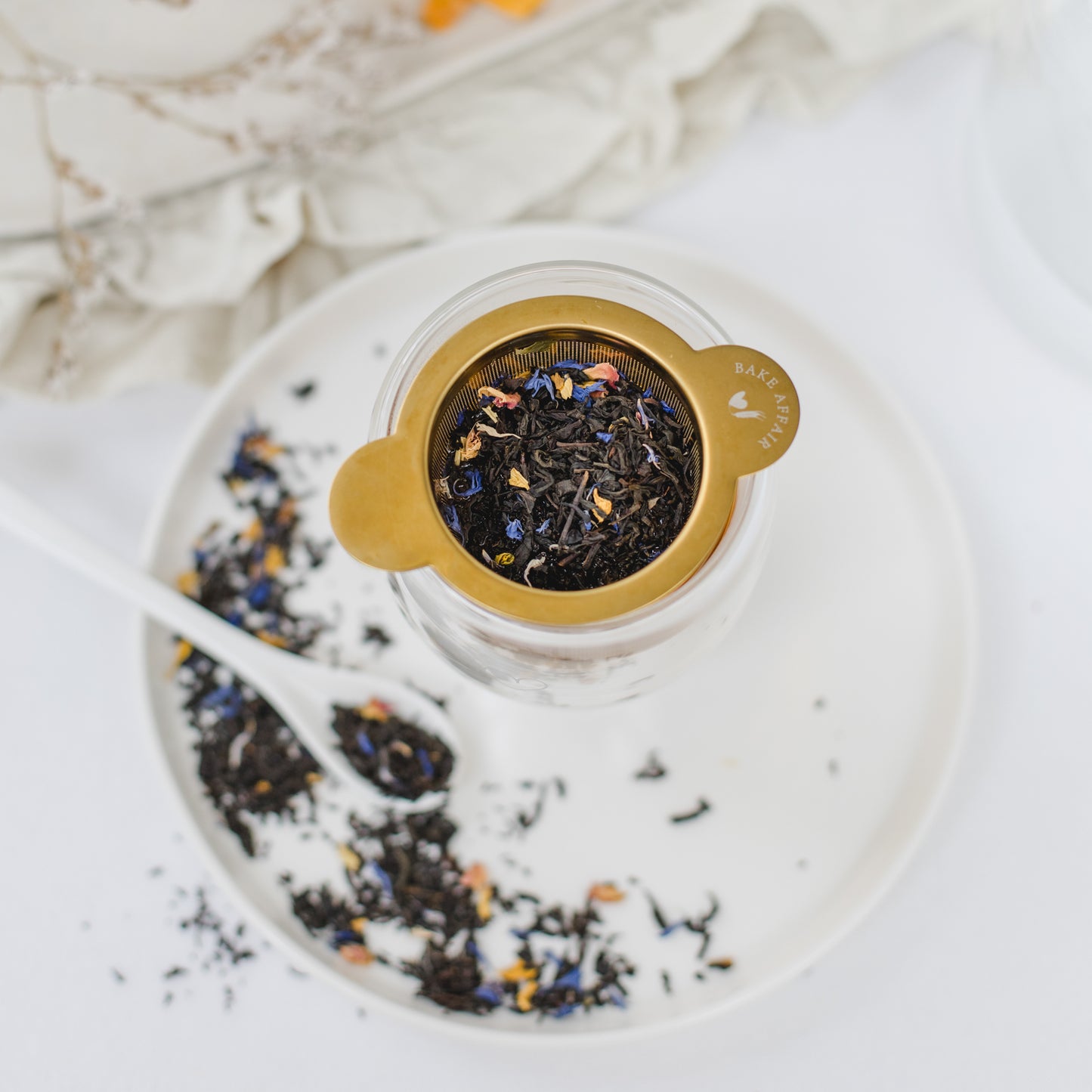 1. 4-5 Teelöffel Tee in ein Teesieb geben.