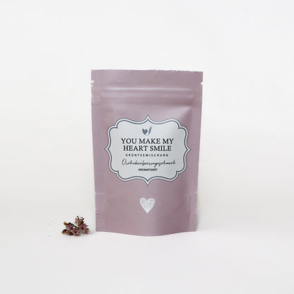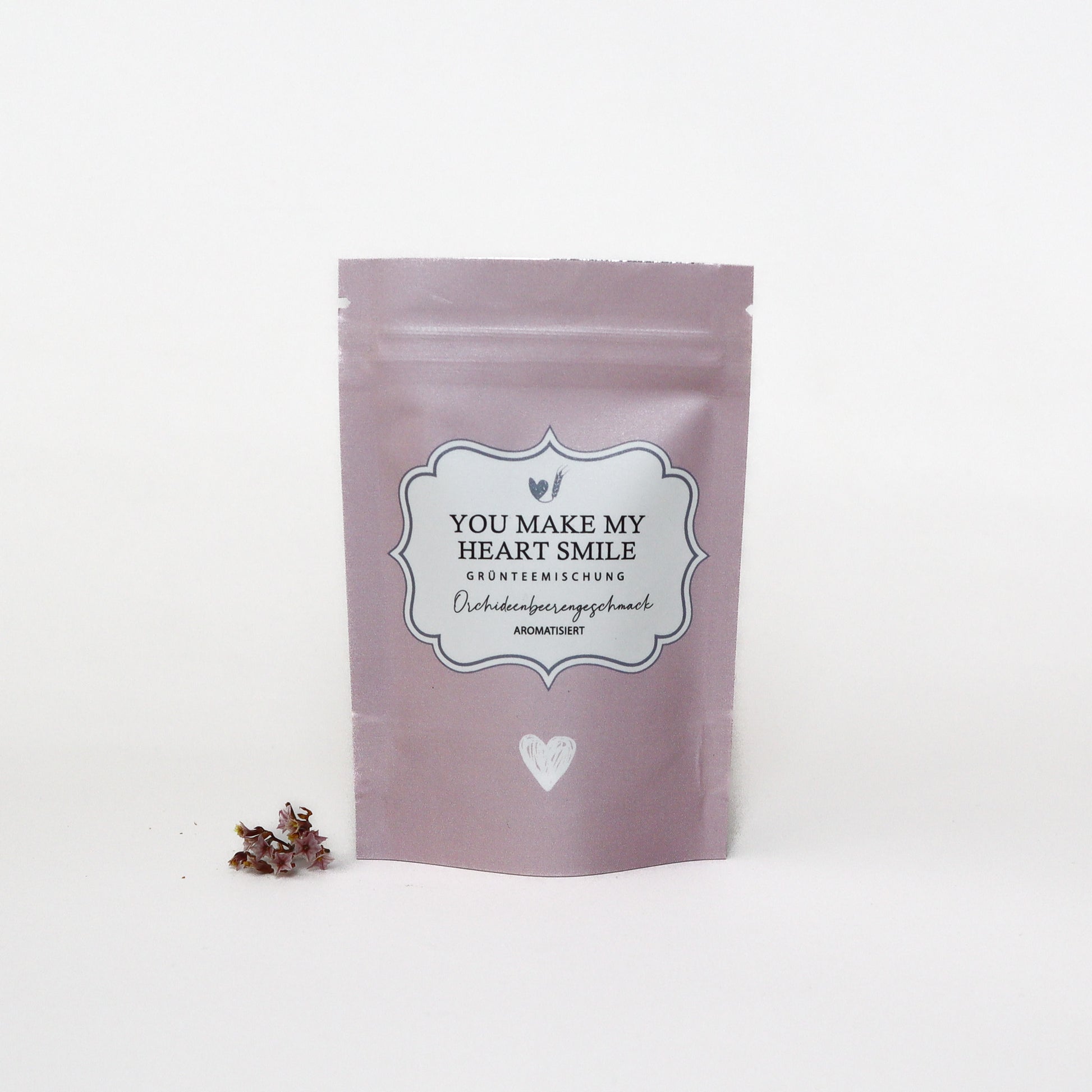 Für all die Momente, die dein Herz zum Lächeln bringen, und für alle, die das Leben in vollen Zügen genießen Diese Teemischung verführt mit der frischen Leichtigkeit von grünem Tee und einer fruchtigen Explosion aus getrockneten Erdbeeren, Johannisbeeren, Himbeeren und sauer-süßen Kirschen. Das zarte Orchideenbeeren-Aroma rundet diese fruchtig-blumige Komposition perfekt ab und macht jede Tasse zu einem echten Wohlfühlmoment.