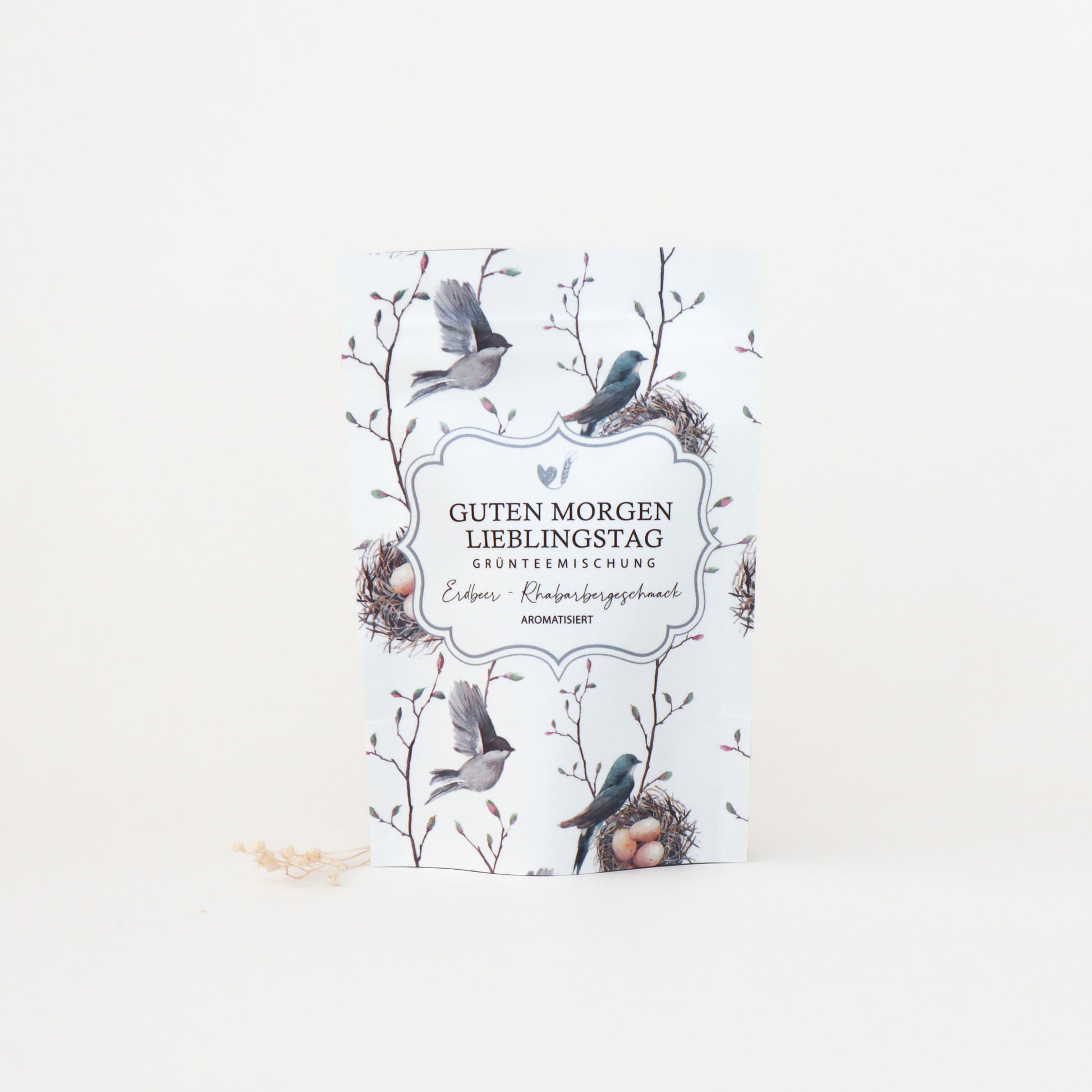 • Grönt teblandning med jordgubbs-rabarbersmak
