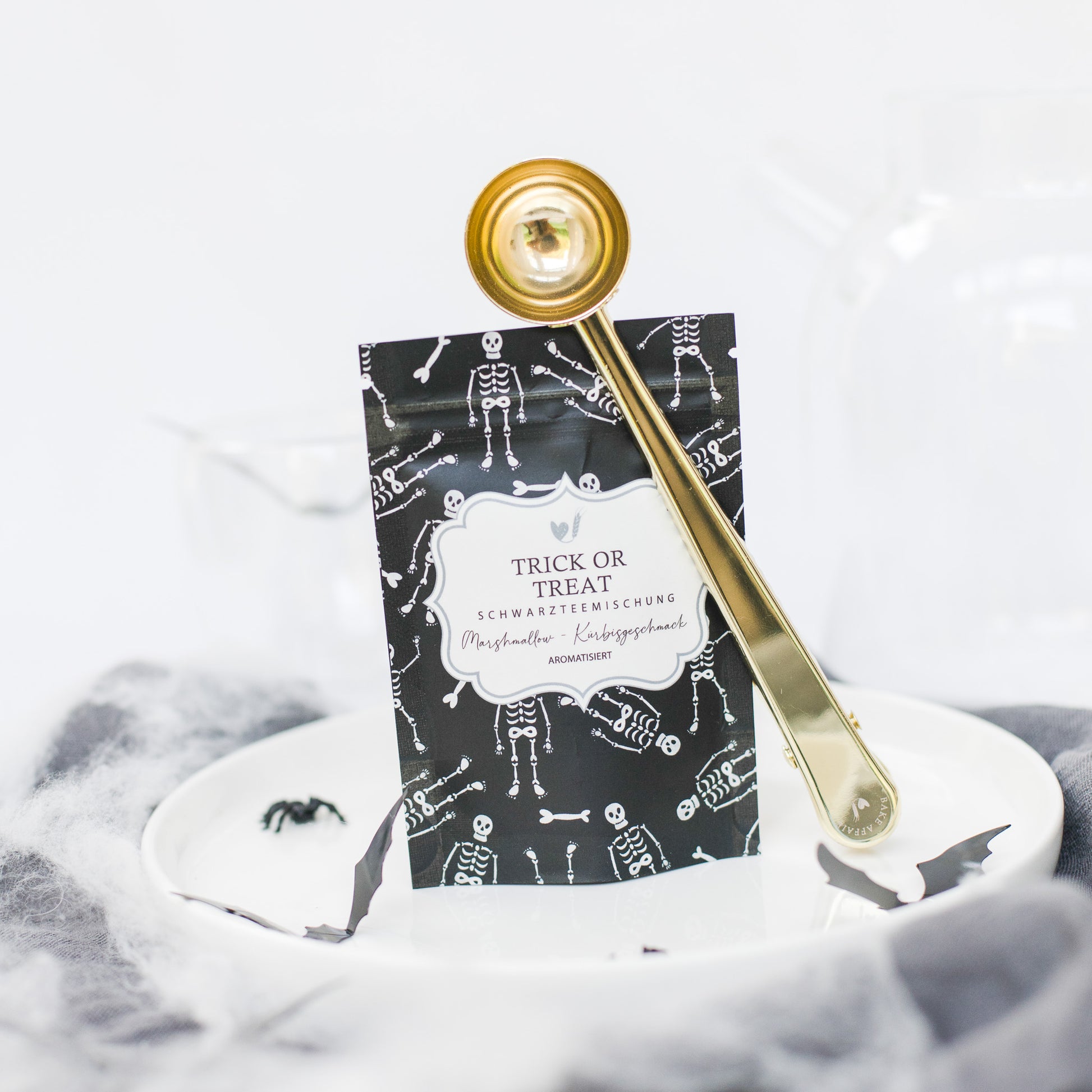 Vårt "Trick or Treat" svarta te i sorten Pumpkin Marshmallow kombinerar det starka djupet av svart te med den milda sötman från marshmallow och den milda smaken av pumpa. En frestande mix som kommer att fördjupa dig i höstliga feel-good-ögonblick – perfekt för Halloween-kvällar som kräver en touch av sötma!